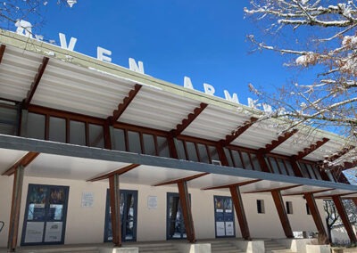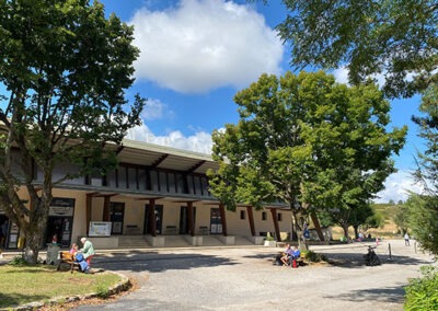 In 2022, fifty years later, the building was completely renovated. The use of the rooms was reimagined to simplify circulation and better match modern lifestyles: the ticket office was moved to the lower hall, together with the shop; the upper waiting hall became an exhibition hall. The building’s post-modern style retained all its strength, making it still “an atypical station” in the heart of the Causse Méjean.